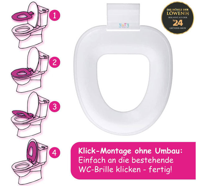 Kinder können mit dem Yarykidz WC-Sitz deutlich früher und einfacher alleine auf Toilette gehen. Das macht nicht nur die Kleinen stolz sondern freut auch die Grossen. So wird er ein flexibler, einfach zu installierender und preiswerter WC-Sitz für die ganze Familie.